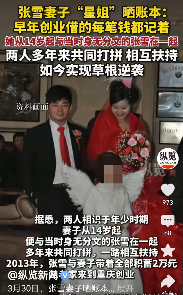更难能可贵的是,这是一个从一而终的圆满故事。如今的张雪早已经功成名就,成了圈内外响当当的人物,身价地位和19岁时不可同日而语。在这个诱惑遍地、名人动不动就因为感情问题“塌房”的时代,张雪不仅没有飘,反而和当年那个陪他吃苦的爱人依旧甜甜蜜蜜,恩爱如初。当初你陪我白手起家,如今我让你共享繁华,这种双向奔赴的神仙爱情,属实让人眼红。